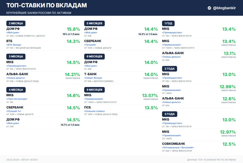 Указанные ставки в любой момент могут измениться, в паре мест уже стоят актуальные ставки на 30.03-01.04, из последних изменений по срокам: см. Реалист▪️Нет периода охлаждения💳