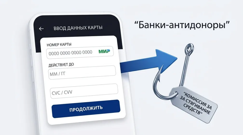 Это сленговое название банков, которые берут комиссию за «стягивание» денег с карты путём ввода реквизитов карты посредством p2p/c2c-переводов. Некоторые недооценивают важность этих знаний из-за бесплатных переводов по СБП и зря.