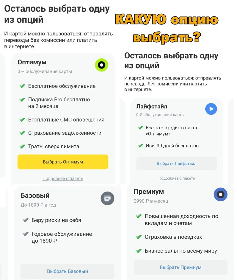Что касается вопроса на картинке — выбирать нужно Базовый. Это не логично, ведь пугают какими-то рисками-ирисками и годовым обслуживанием до 1890 ₽.