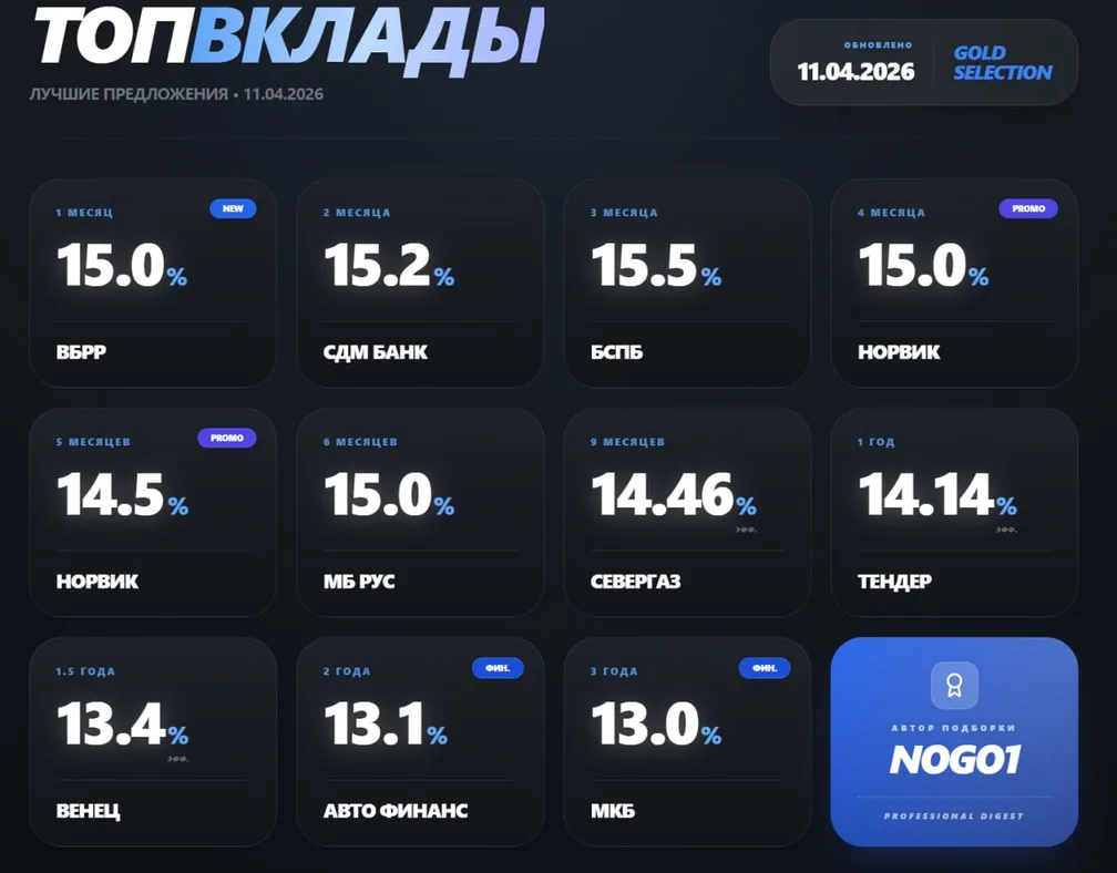 ТОП-вклады: лучшие предложения на каждый срок (11.04.26)