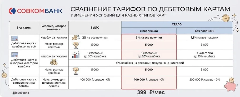 💳 Совкомбанк ухудшает условия по дебетовкам