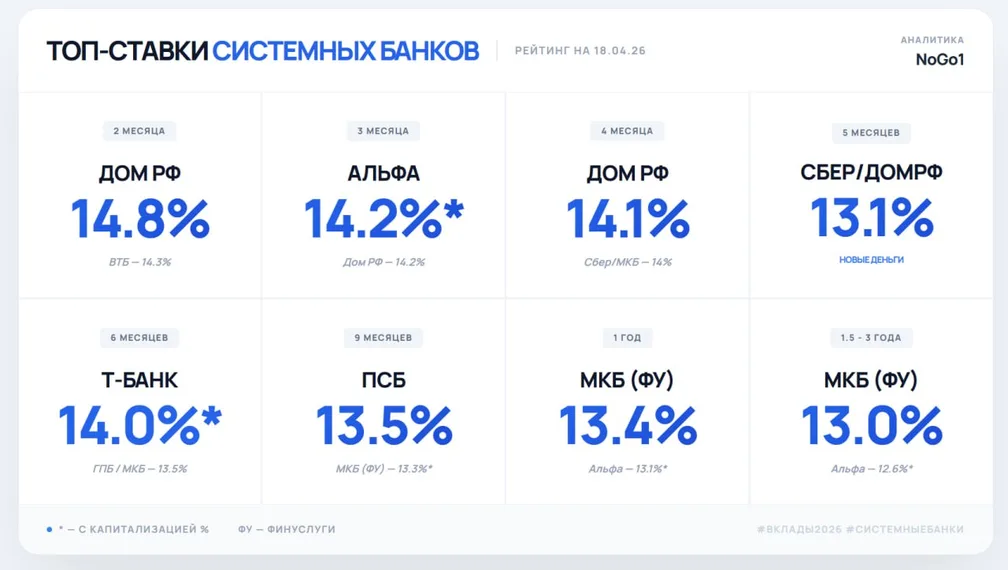 ⭐️Топ-вклады в системно значимых банках (18.04.26)